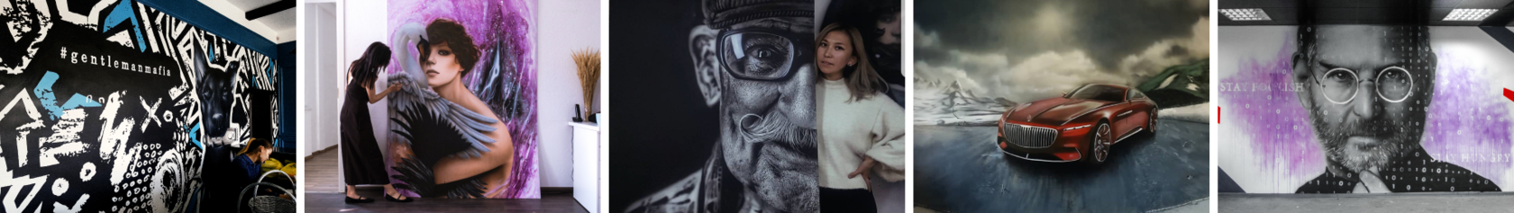 Большой опыт работы и владение разными техниками нанесения рисунка, позволяет быстро и качественно выполнять роспись стен от 2 до 7 дней.